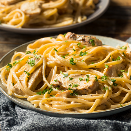 Espaguetis con salsa de pollo y limón