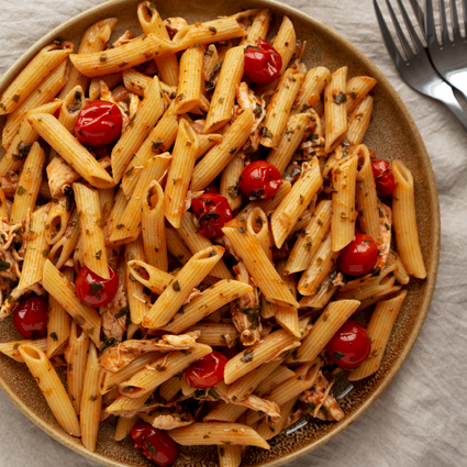 Macarrones con tomates cherry y atún